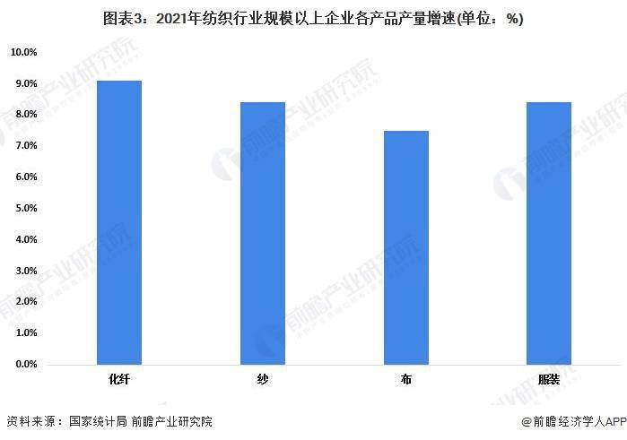 In terms of the production of subdivided products, the output of chemical fiber, yarn, cloth and clothing of textile enterprises above designated size will increase by 9.1%, 8.4%, 7.5% and 8.4% year on year respectively in 2021.